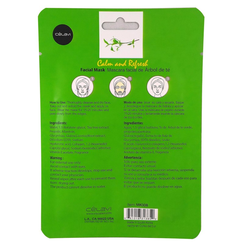Celavi Essence Facial Mask Paper Sheet Korea Skin Care Moisturizing 24 Pack (Tea Tree)
