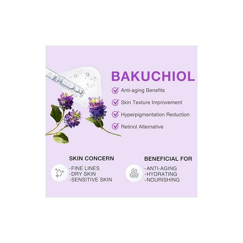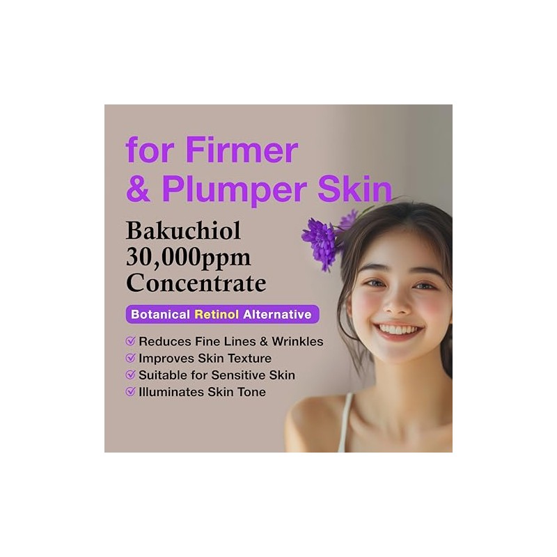 CELDYQUE Bakuchiol Serum 30,000 ppm La alternativa definitiva al retinol para una piel joven y radiante Experimente el poder del Bakuchiol con el suero de alta potencia CELDYQUE, formulado con una impresionante concentración de 30,000 ppm. Esta alternativa de retinol a base de plantas ofrece todos los beneficios antienvejecimiento del retinol tradicional sin los efectos secundarios agresivos, lo que lo convierte en la opción perfecta para quienes tienen piel sensible o cualquier persona que busque rejuvenecer su cutis. 🌿 MEZCLE CON HIDRATANTE PARA OBTENER MEJORES RESULTADOS: Debido a la alta concentración de 30,000 ppm de Bakuchiol, es esencial mezclar unas gotas del suero con su crema o loción favorita antes de la aplicación. Esto asegura una absorción óptima y minimiza el riesgo de irritación para una tez suave y radiante.