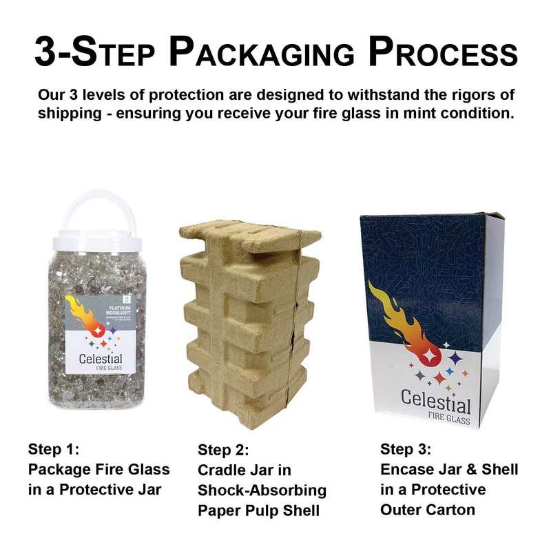 Celestial Fire Glass High Luster, 1/4" Reflective Tempered Fire Glass in Platinum Moonlight, 10 Pound Jar