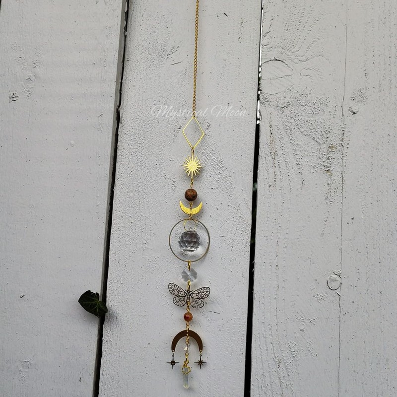 - Celestial Design: Intricate hanging decor featuring celestial motifs like moons, stars, and a delicate moth silhouette.