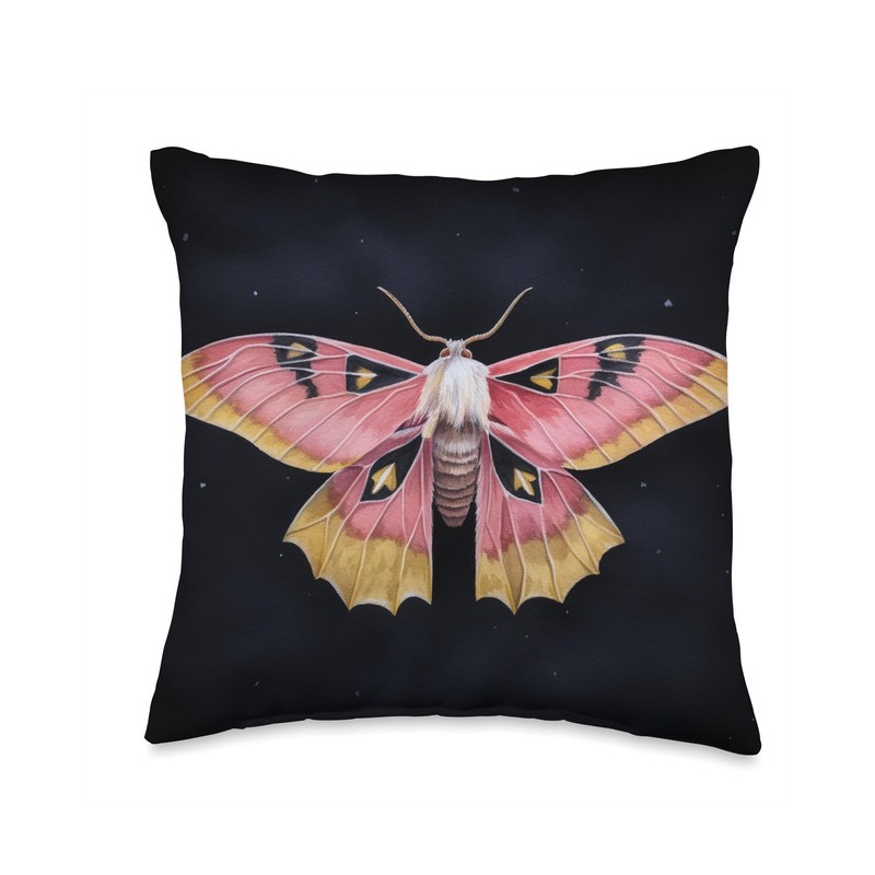 Celestial Rosy Maple Moth Throw Pillow