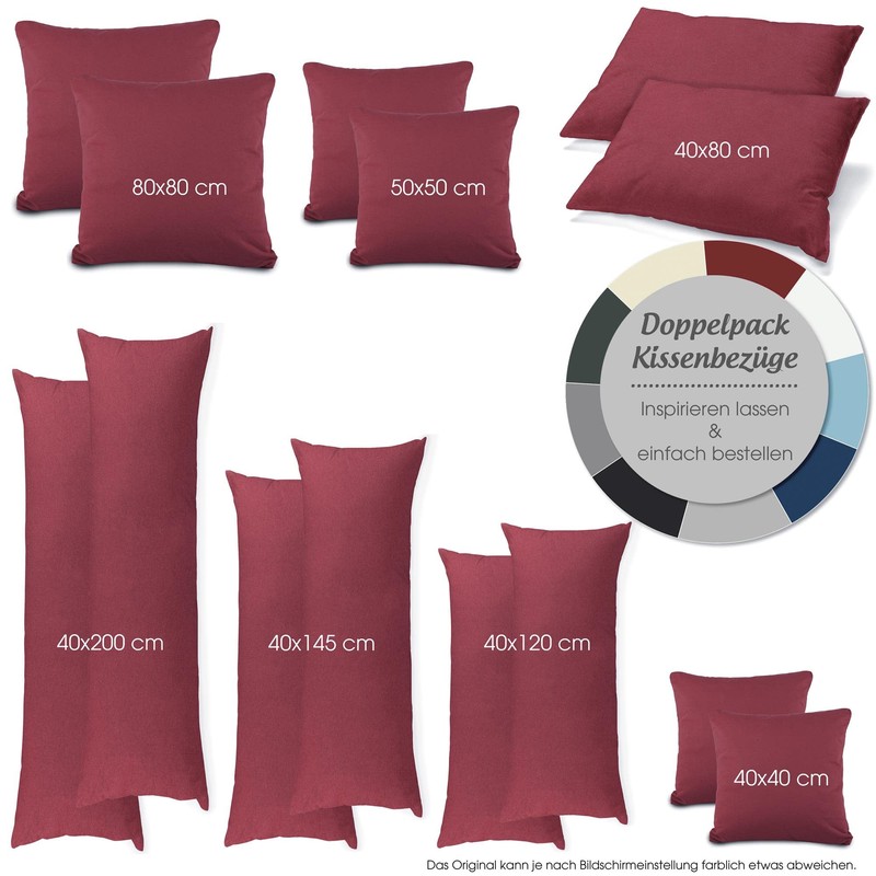 - You will receive two active cushion covers in the colour and size you choose, either 40 x 40 cm, 50 x 50 cm, 40 x 80 cm, 80 x 80 cm, 40 x 120 cm, 40 x 145 cm or 40 x 200 cm. CelinaTex, your specialist in the kitchen, household and living area, home textiles, bathroom and bedding, bed linen, bed sheet and pillowcase