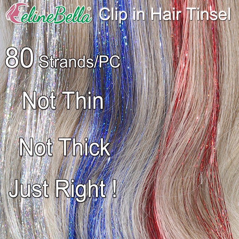 - Safe and Comfortable: CelineBella Hair Tinsel Is Soft, Light, Super Smooth, Tasteless, Colorfast, Non-Tangled and Non-Shedding.