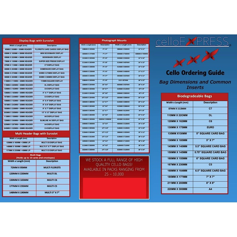 - OUR RANGE: Celloexpress RRS Bags are available in a large range of sizes. Please check the exact millimetre size of your items, including any envelopes or mounts so that the correct size bag is purchased. Contact us if you need any assistance to choose the size you require