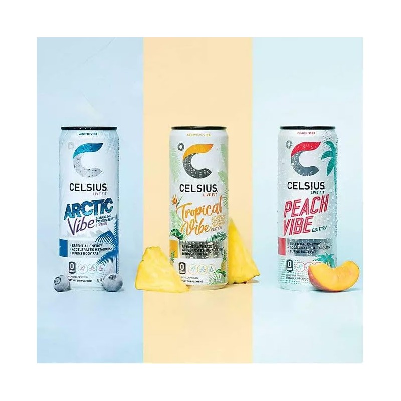 Celsius-Energy Sparkling Vibe Variety Pack, 12 fl. oz., 9 Pack – Peach, Tropical, and Arctic Vibe (9 Pack)