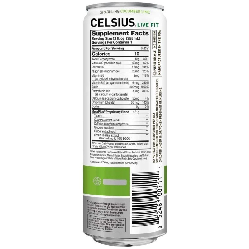 CELSIUS Sparkling Fitness Energy Drink, Zero Sugar - Cucumber Lime, (12) Cans