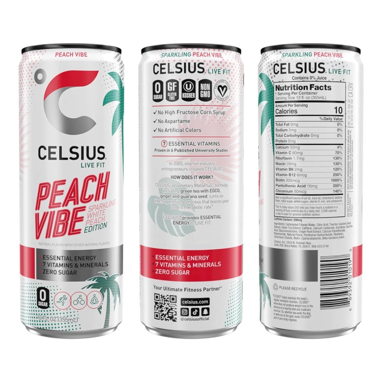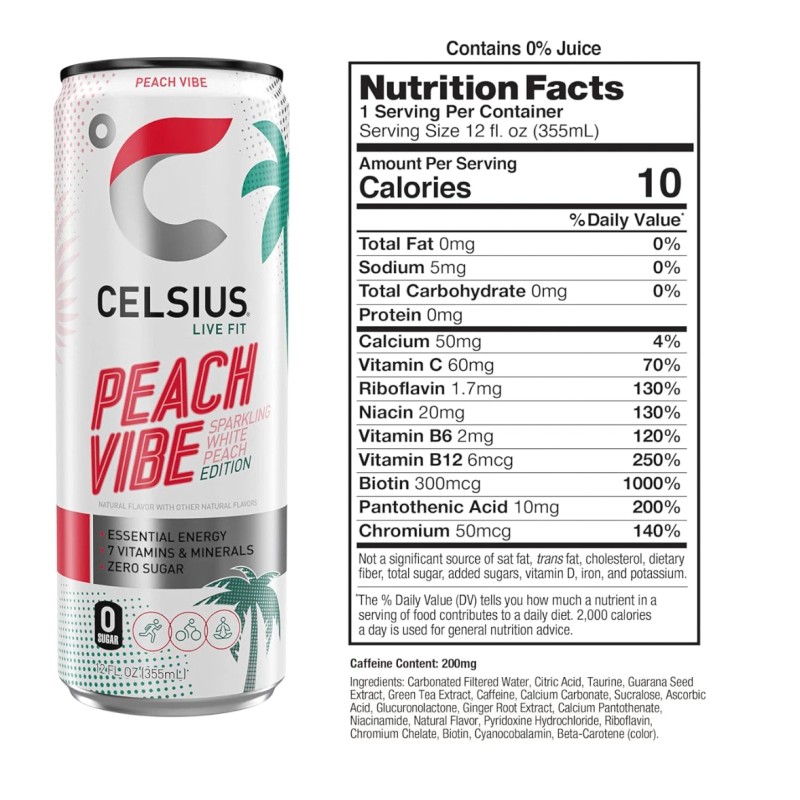 CELSIUS Sparkling Peach Vibe, Functional Essential Energy Drink 12 Fl Oz (Pack o