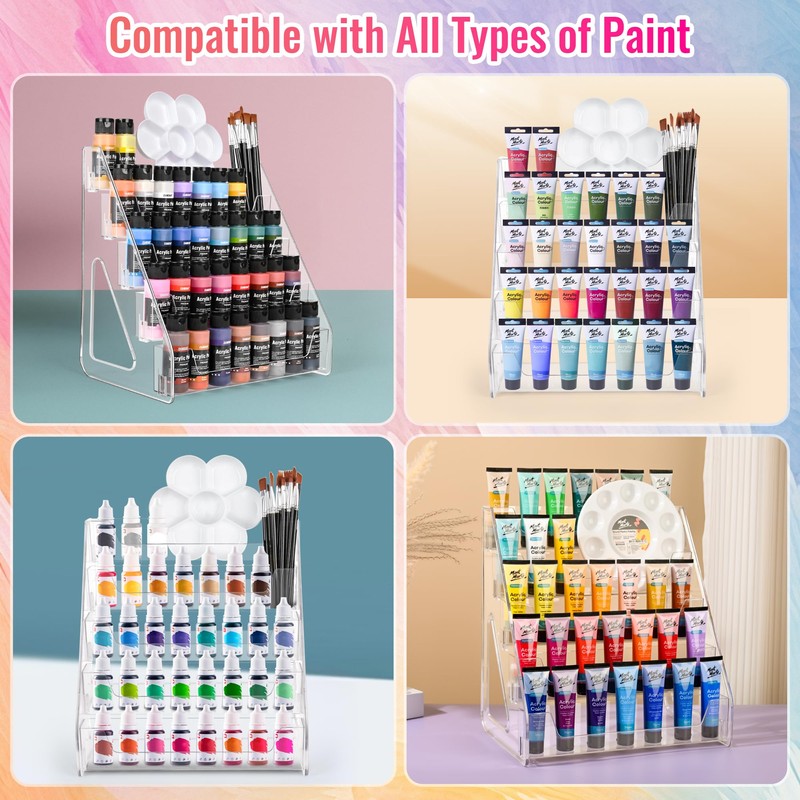 CELSOL 2 Pack 5-Tier Acrylic Paint Organizer, Clear Snap-On Storage Rack for Paints & Art Supplies, Elevated Design for Versatile Storage, No-Tools Setup & Quick Access