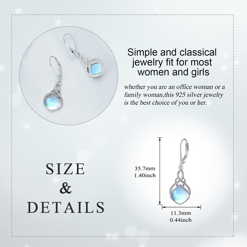- ♥Moonstone Celtic earrings size: 35 x 11.5 mm (1.38 x 0.45 inches), Celtic knot earrings made of 925 sterling silver, tarnish-resistant, white gold-plated, hypoallergenic, no nickel, no lead, no cadmium