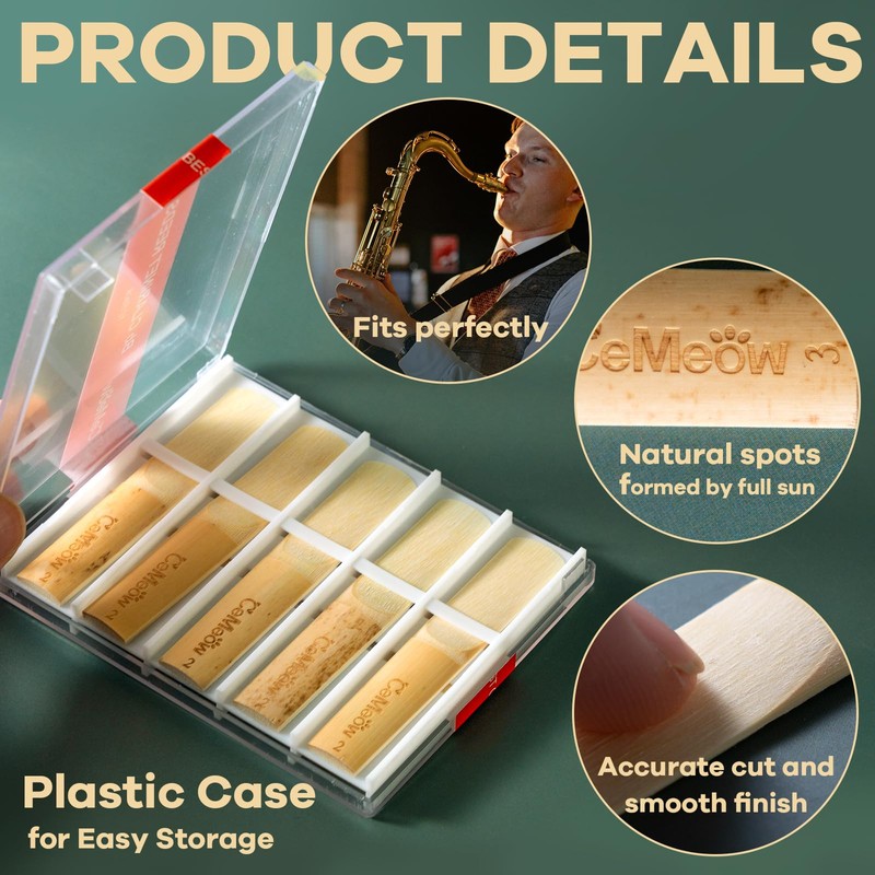 - Highly Cost-Effective: 10pcs per pack Stocked in the sealed plastic case, which can ensure the freshness. CeMeow alto saxophone reeds has stable vibration to keep a richness of tone and good elasticity