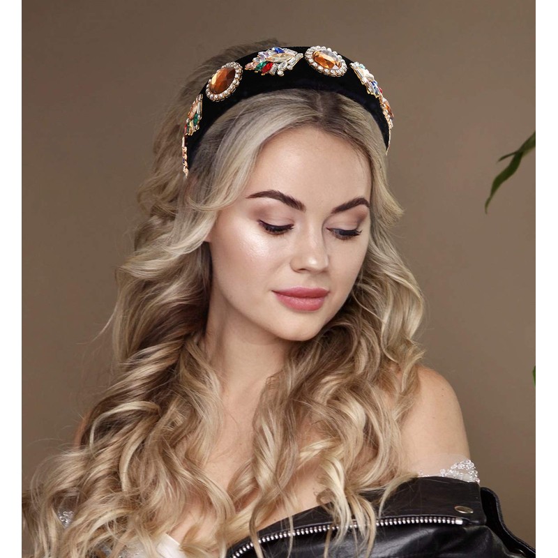 - ¡La chica que es una princesa en el corazón seguramente amará la diadema de gemas! Esta diadema de lujo con diamantes de imitación lleva el terciopelo negro como base acentuada con brillantes piedras brillantes. Bajo la luz o el sol, la deslumbrante luz emitida por las piedras preciosas añadirá un toque de brillo celestial a tu look diario.