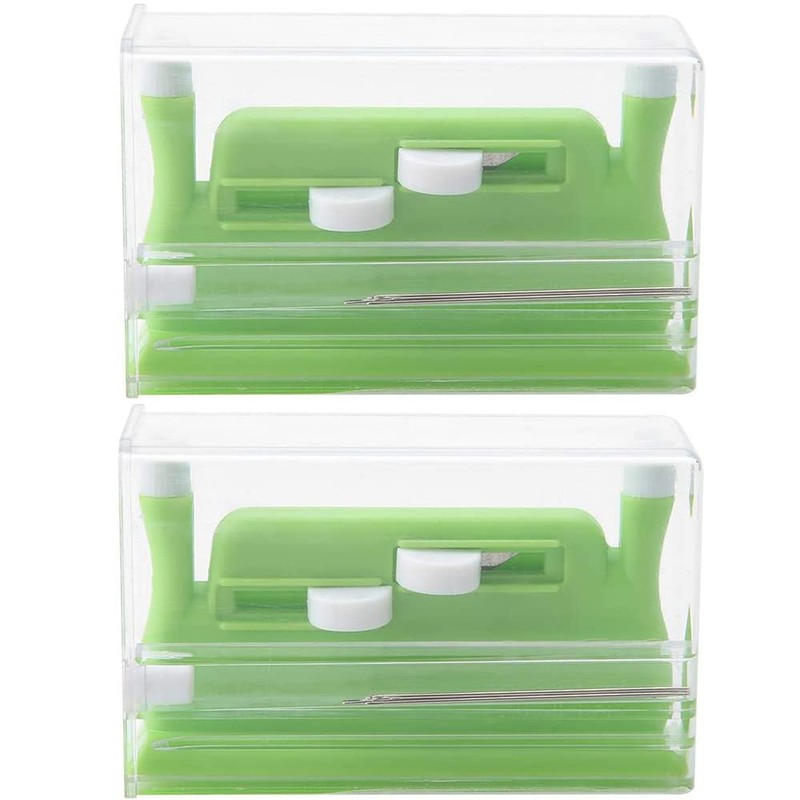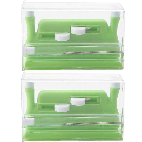 CENPEK 2 Pieces Desk Needle Threader, Automatic Double Needle Hand Threader, Green Double Hole Needle Threader Insertion Tool for Sewing Machine, DIY, Handmade Work, Threader