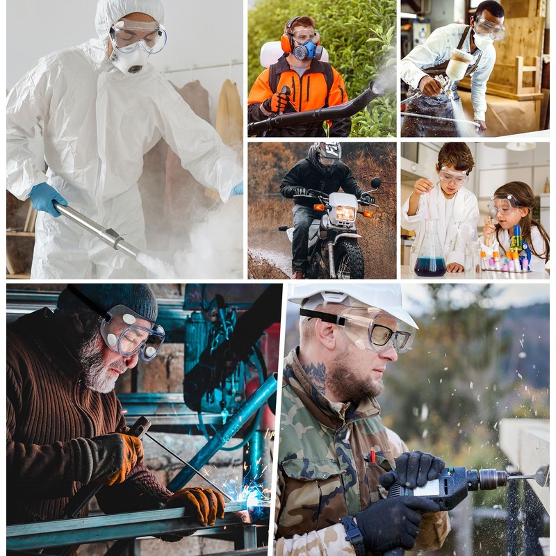- [Ventilated Work Goggles] Equipped with four innovative vents, construction goggles for men ensure optimal airflow while shielding against iron filings, ash, sand, liquids, and more. Ideal for industrial, housework, lab, chemistry, woodworking, painting, cycling, skydiving, DIY projects, and workplace safety.