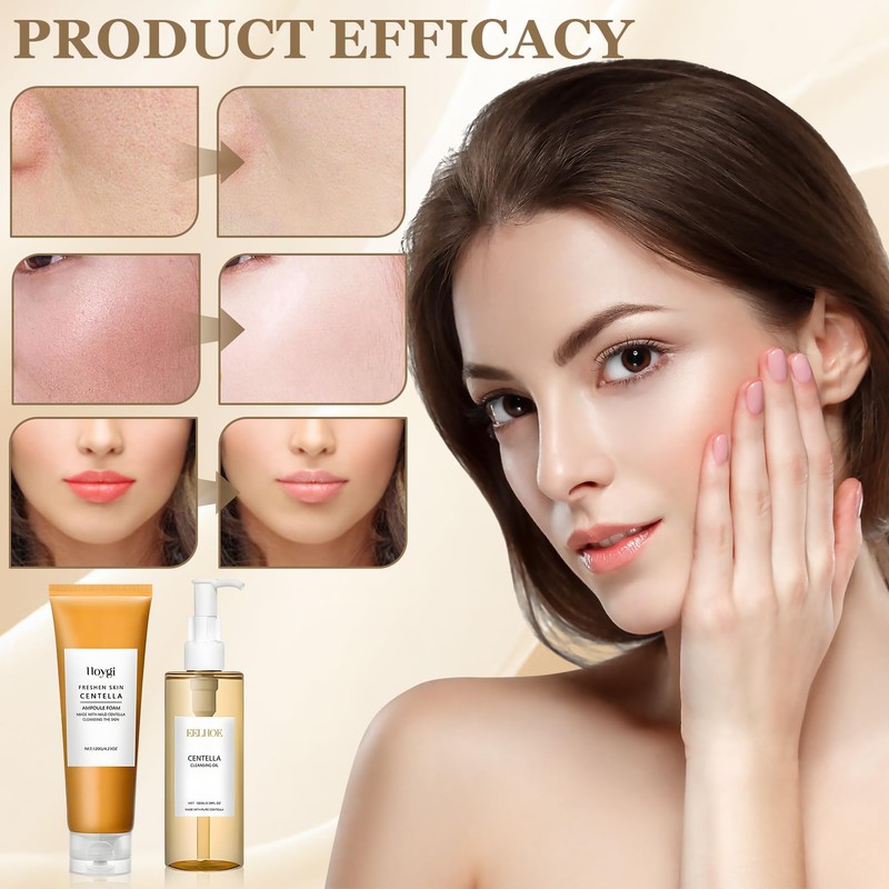 - 【GENTLE CLEANSING & MAKEUP REMOVE】Centella Asiatica Cleansing Oil is a combination of makeup removal and cleansing in one. It thoroughly removes makeup, sebum and impurities from pores while keeping skin moisturized without tension. The cleanser gently cleanses and reduces blackheads and is also suitable for sensitive skin.