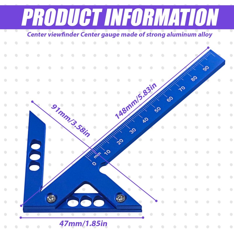 - High-quality materials: the centre finder centre gauge line ruler is made of a robust aluminium alloy, which is known for its durability and resistance. This material ensures that the measuring tool is not corroded or damaged even during intensive use. The precise workmanship ensures a smooth surface that is safe and comfortable to handle. The tool is therefore ideal for long-term use in woodworking and other craft activities.