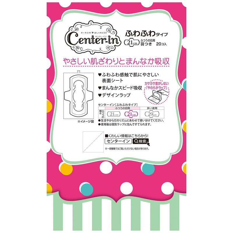 Center-In Fluffy Normal Daytime with Wings, 8.3 inches (21 cm), 20 Sheets x 2 Pieces (Sanitary Napkins)
