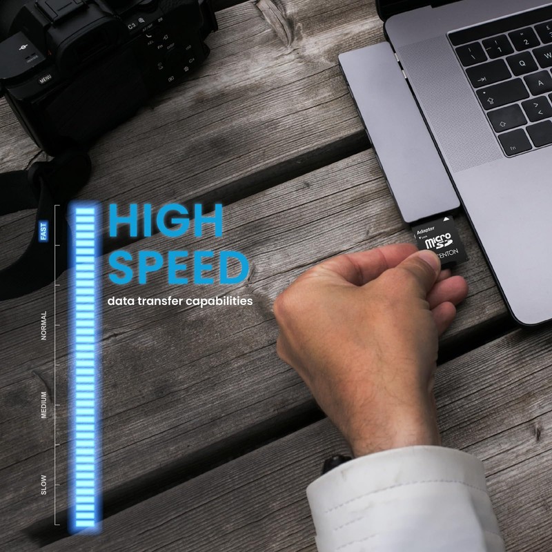 - Class 10 MicroSD card with read/write speeds of 80MB/s and 20MB/s