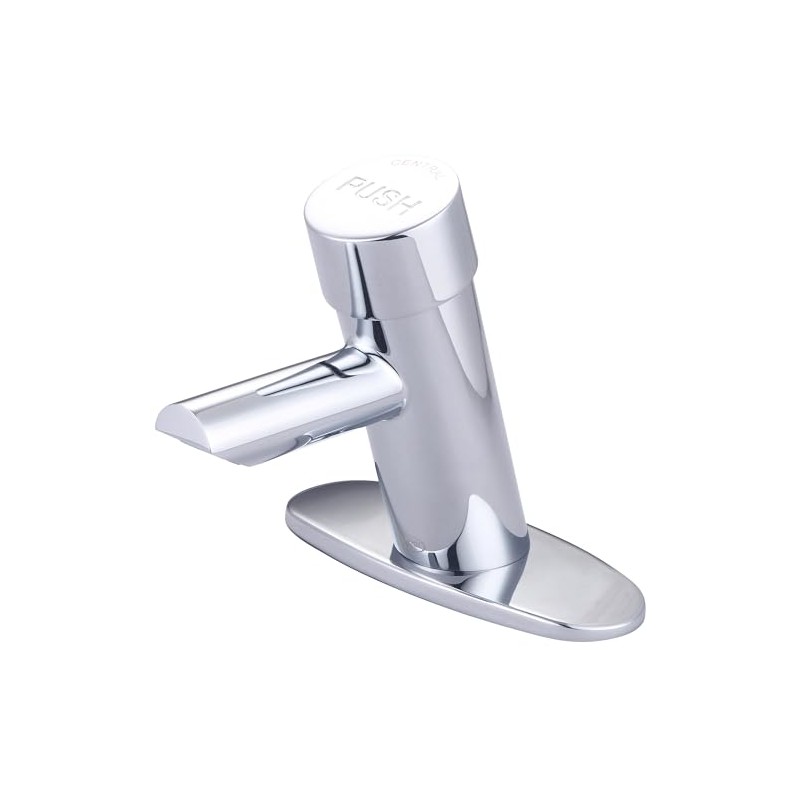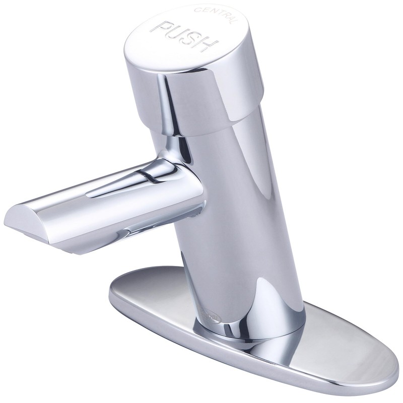 Central Brass 0357P Slow-Close Single Handle Basin Metering Faucet w/Optional Deckplate Plain Indicator in Chrome
