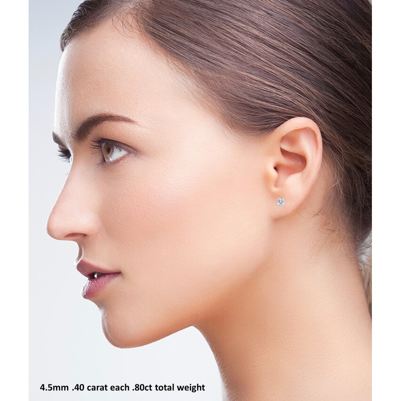 - Posts are 14 Karat Solid Gold, 100% Nickel Free, 100% Hypoallergenic Earrings. These gorgeous simulated diamond stud earrings are made of Solid 925 Sterling Silver plated in Platinum with Solid 14K Gold Posts in a 4 prong basket. They have the look of 0.80 carat total weight diamond earrings for a fraction of the price & measure 4.5mm in diameter, 1.50ct in each ear. Posts are double notched for comfort & extra security. These Cz stud earrings are made with Genuine Pure Brilliance Zirconia.