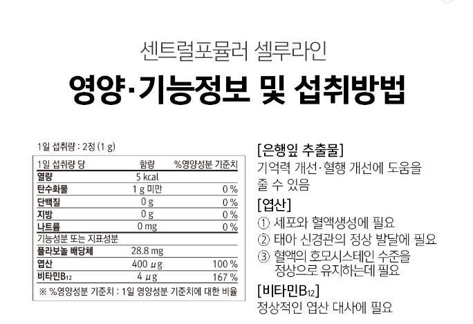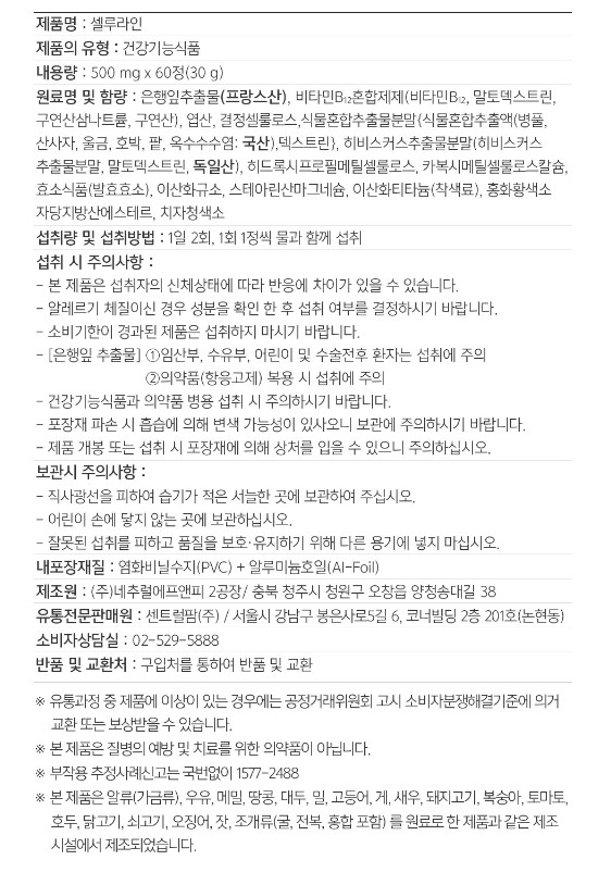 Central Formula Celluline 60 tablets x 2 / 센트럴포뮬러 셀루라인 60정 X 2개