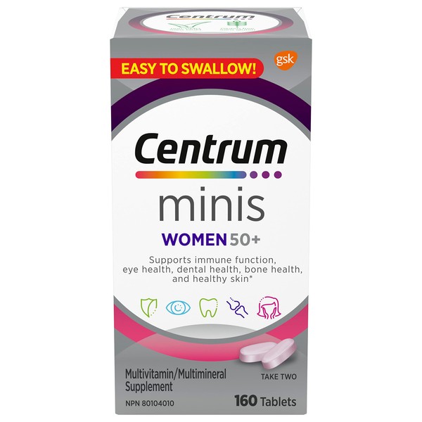 Centrum Women 50 Plus Multivitamins/Minerals Supplement for Women 50+, 160 Mini Tablets