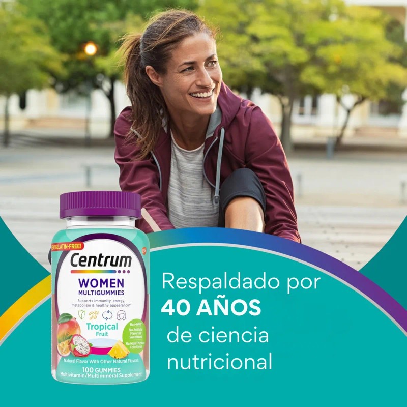 Centrum - Centrum Women MultiGummies Vitaminas C D3 B12 Biotina y Zinc para Energía Inmunidad y Belleza Sabor Tropical Natural Sin Gluten ni Gelatina 100 Gomitas. ⭐ Calidad premium certificada con excelentes reseñas. Materiales de alta gama y acabados premium. 🏆 Recomendado por expertos. Ideal para quienes buscan lo mejor en calidad y estilo. Producto auténtico con satisfacción total asegurada. ¡No te quedes sin el tuyo y aprovecha esta oportunidad única!