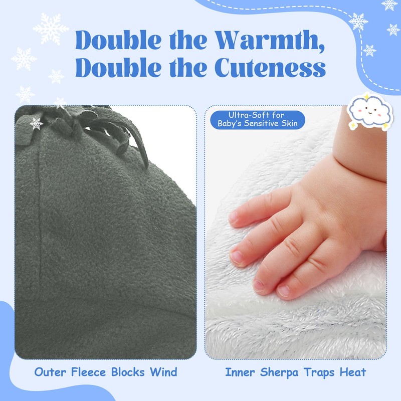 - Warm: The Sherpa Lined Fleece Hat Mitten Set will keep baby boys and girls warm all day long. High quality material, very friendly to skin. this soft hat will not cause pressure on your kid's head while keeping warm.