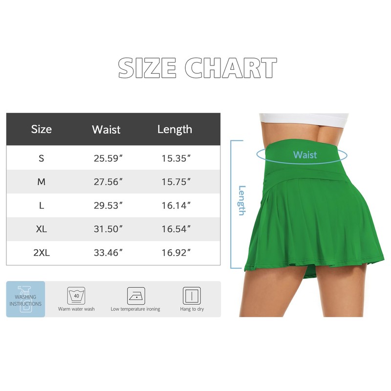 - Características: falda de cintura alta para mujer. Nuestras faldas cuentan con una cintura alta y leggings cortos integrados ocultos para una cobertura más segura para que puedas moverte tanto como quieras. También tiene bolsillos que pueden contener teléfonos móviles u otros objetos pequeños.