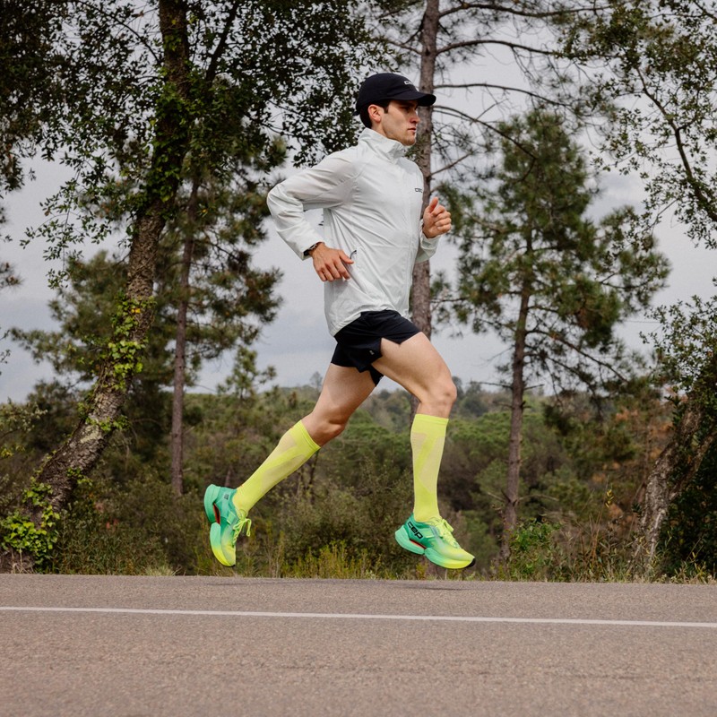 The CEP Pro Run Ultralight Tall Compression Socks for Men are designed for elite performance with minimal weight. Featuring medical-grade, signature 3D compression technology, they deliver targeted activation and support to improve blood flow and reduce muscle fatigue, helping you sustain energy longer during training and competition. Ultra-fine knit zones ensure optimal breathability and comfort in warm conditions, while minimal cushioning reduces weight for enhanced ground feel and efficient power transfer with every stride. Designed for driven runners who want high-performance socks with little to no padding and exceptional breathability in hot conditions.