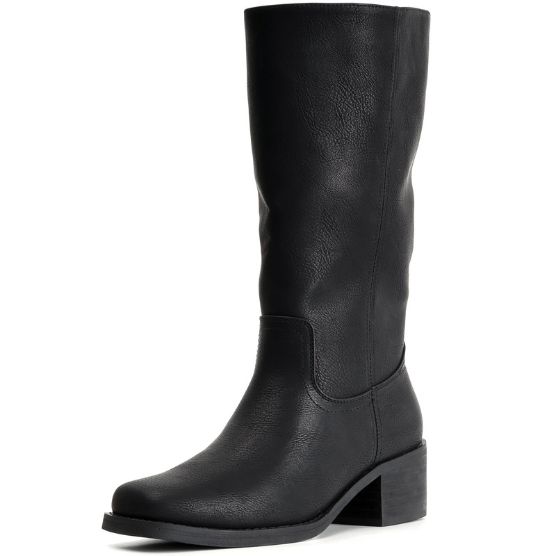 CEPEPRIN Women's Square Toe Boots Comfortable Chunky Block Heel Casual Boots Mid Calf Riding Boots