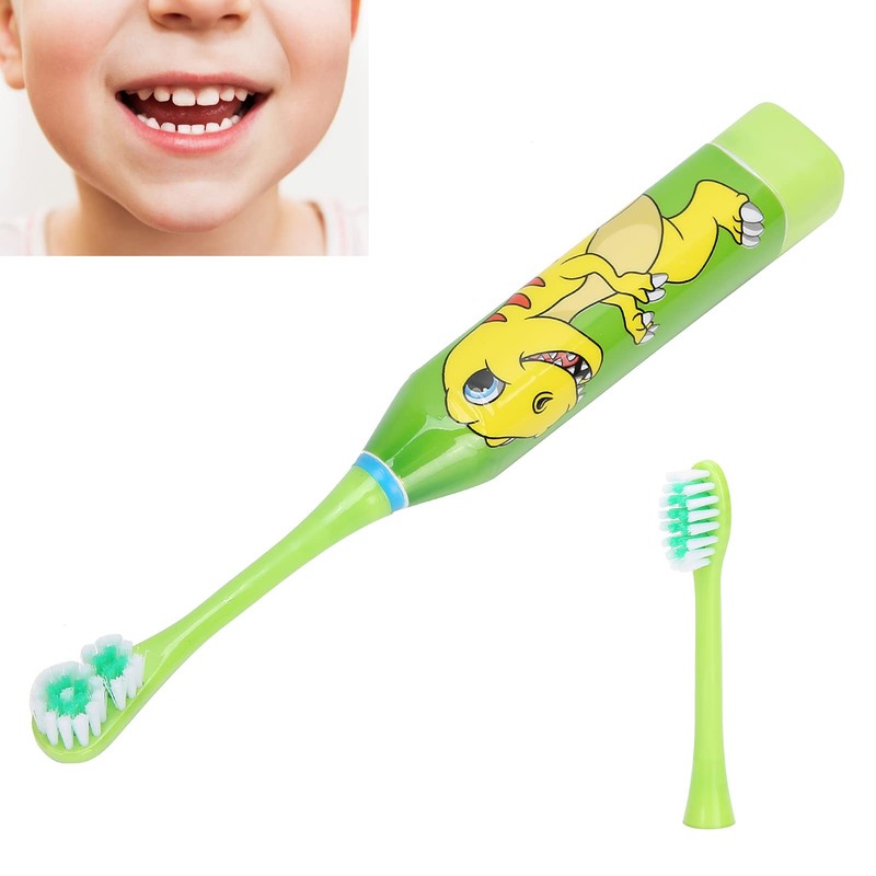 Cepillo de Dientes Eléctrico para Niños, Patrón de Dibujos Animados Encantador, Cepillo de Dientes para Limpieza de Dientes para el Cuidado Bucal, Material de Grado Alimenticio(verde claro)