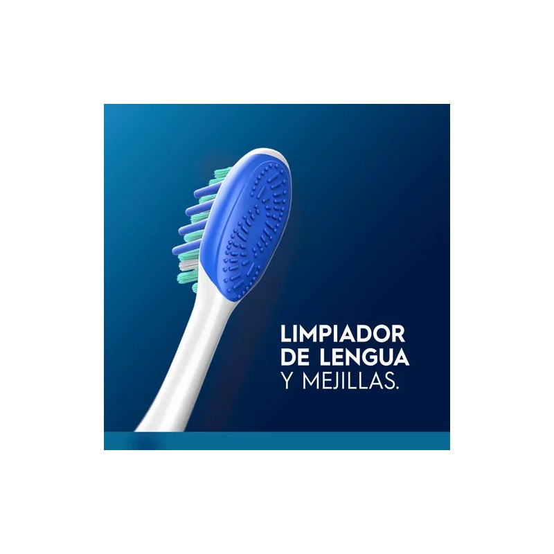 Incluye cerdas pulidoras, un limpiador de lengua y mejilla, además de una punta ultra efectiva que limpia áreas de difícil alcance.