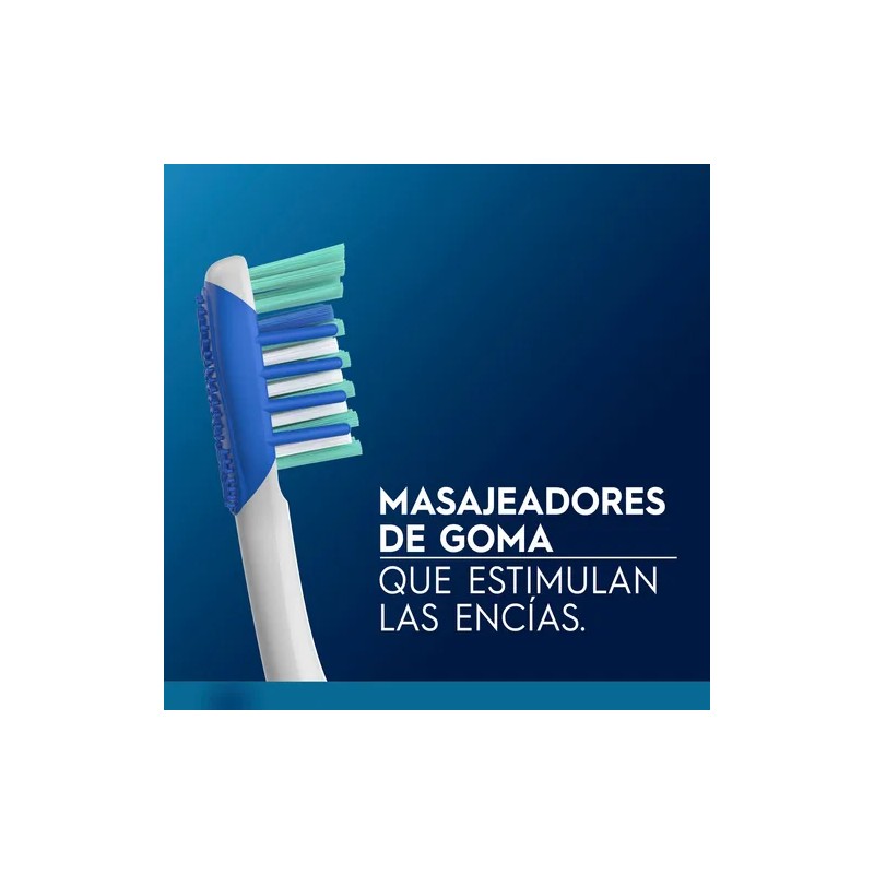Sus cerdas de punta redondeada ayudan a cuidar tus encías, además cuenta con masajeadores de goma que estimulan las encías.
