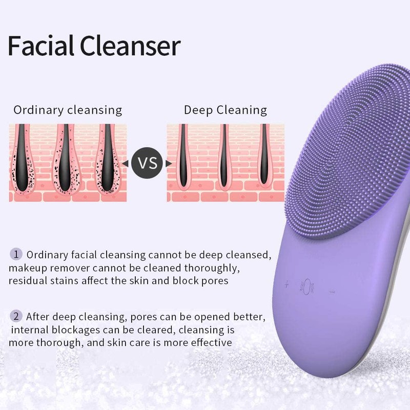 Cerdas de silicona suave. Las cerdas de silicona suave pueden proporcionar una limpieza facial profunda. Diferentes grosores y tamaños de cerdas funcionan para diferentes pieles faciales, deja que el maquillaje, el aceite y la suciedad de los poros eliminen a fondo.