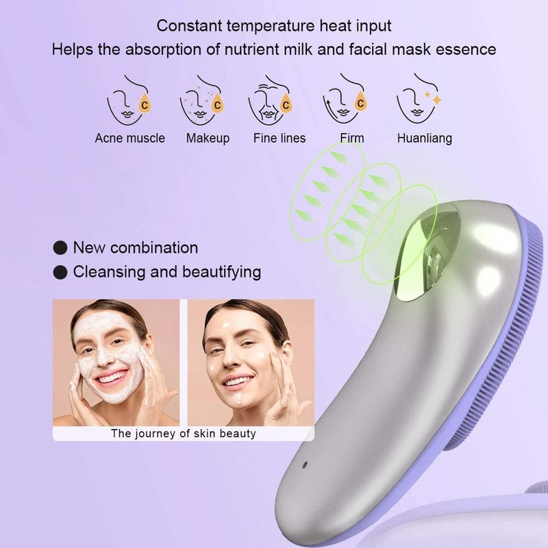 Tecnología de temperatura constante calentable. Se puede utilizar para masajear la cara, los ojos, la nariz, etc. El masaje calentado ayuda a abrir los poros e importar esencia, mejora el efecto de absorción de la esencia, alivia la fatiga.