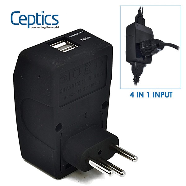 Ceptics GP4-11C 2 USB Brazil Travel Adapter 4 in 1 Power Plug (Type N) - Universal Socket