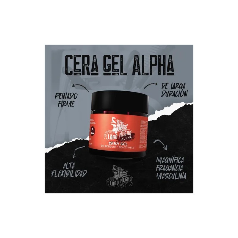 Cera Gel Lobo Negro Alpha 250g con Cencagrow | Fijaci贸n Fuerte para Cabello y Barba | Control y Estilo Duradero