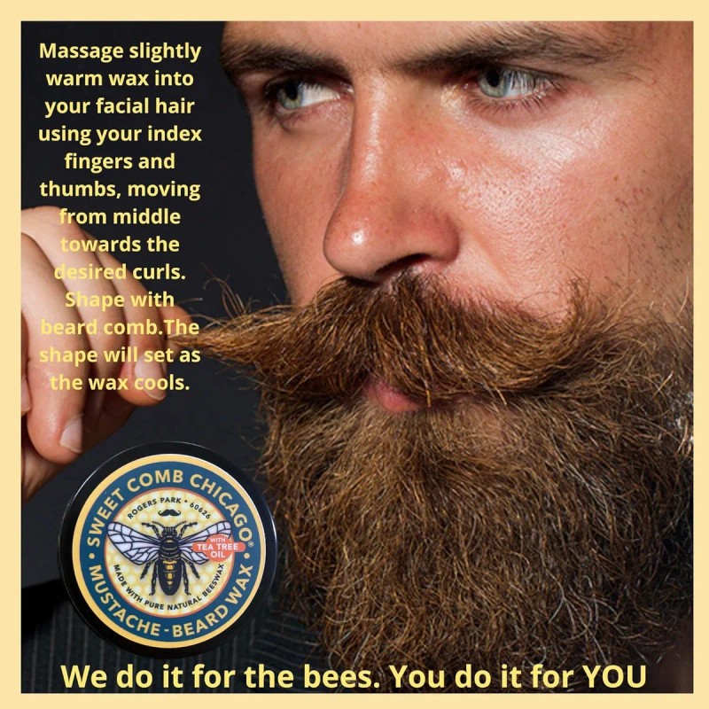 Todos los productos naturales y orgánicos mantienen tu barba y bigote suaves y saludables: nuestra cera de aseo para bigote y barba es 100% natural, orgánica, libre de petróleo y productos químicos. Esta cera proporciona un agarre medio y ayuda a domar y dar forma a tu gloriosa pelusa facial.; Deja que crezca hasta su máximo potencial: deshazte de la crema de afeitar y la maquinilla de afeitar para dejar que el potencial de crecimiento de tu vello facial se vuelva salvaje. Cuando llegue el fin de semana, saca nuestra cera para peinar bigote y barba para lucir tan bien como te sientes Tu bigote y barba merecen lo mejor. . Merecen cera para bigote y barba de Sweet Comb Chicago.; Fácil de aplicar: calienta la cera ligeramente en la palma de tu mano y luego masajea en tu cabello seco de bigote y barba utilizando los dedos índice y los pulgares, moviéndose desde el medio hacia los rizos deseados. Forma con peine de barba o cepillo. La forma se ajustará a medida que la cera se enfría.; Ingredientes hechos a mano a la perfección: hechos con aceite de coco, cera de abejas, aceite de jojoba, aceite de semilla de cáñamo, aceite de árbol de tee, aceite de neroli y aceite de menta para ayudar a nutrir, suavizar e hidratar tu cabello.; Fabricado en los Estados Unidos: Sweet Comb Chicago se desarrolló en el lado norte del barrio Rogers Park de CHICAGO en 2014.