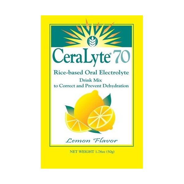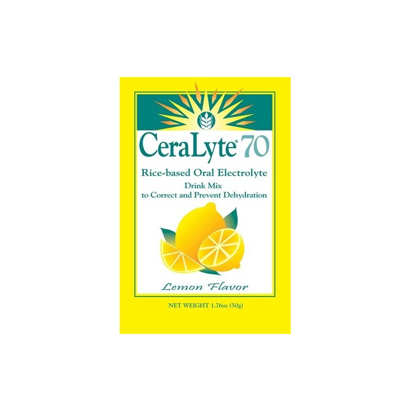 - An oral electrolyte solution, CeraLyte 70 properly replaces fluids and offsets dehydration caused by mild to moderate diarrhea. Ideal for travelers. One 1.7 ounce (50g) packet makes 32 ounces of solution.