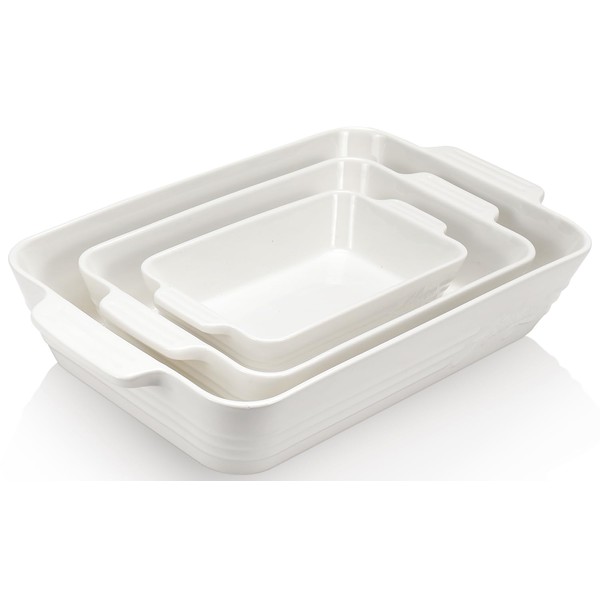 Ceramic Baking Dish Set, 3-Piece Casserole Dishes for Oven, Rectangular Baking Pans, Deep Lasagna Pans with Handles, Multi-Size Set for Cooking, Baking, Serving, and Gifting, White (16.1''/12.2''/9'')