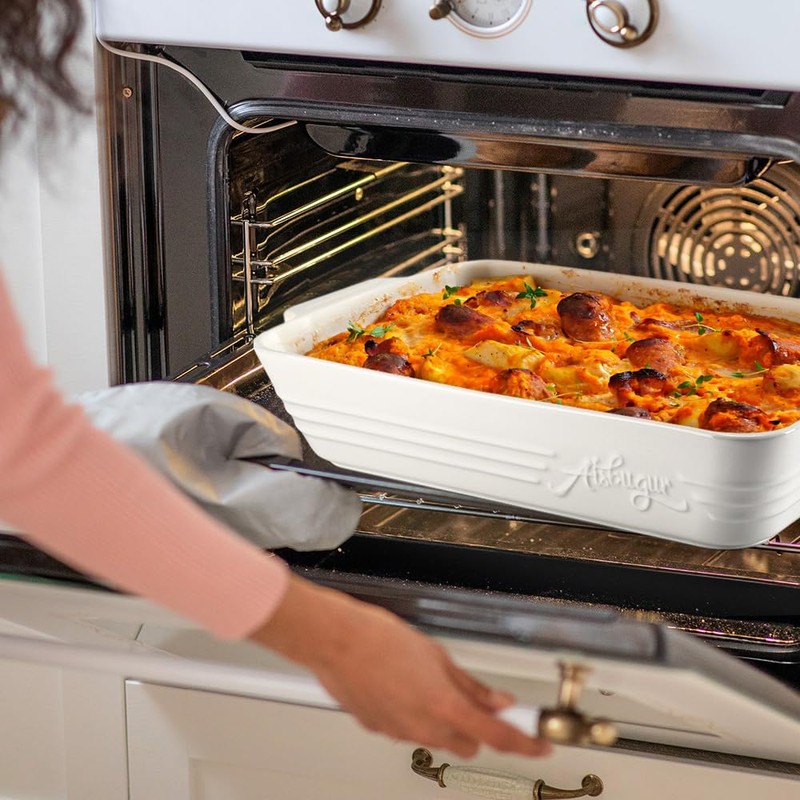 - Premium Lead-Free Ceramic:This baking dish set made from high-quality, lead-free ceramic, ensuring durability and excellent heat distribution. Safe for use in dishwashers, refrigerators, microwaves, and ovens up to 500°F. This baking dish is perfect for all your cooking needs, ensuring your health and safety.
