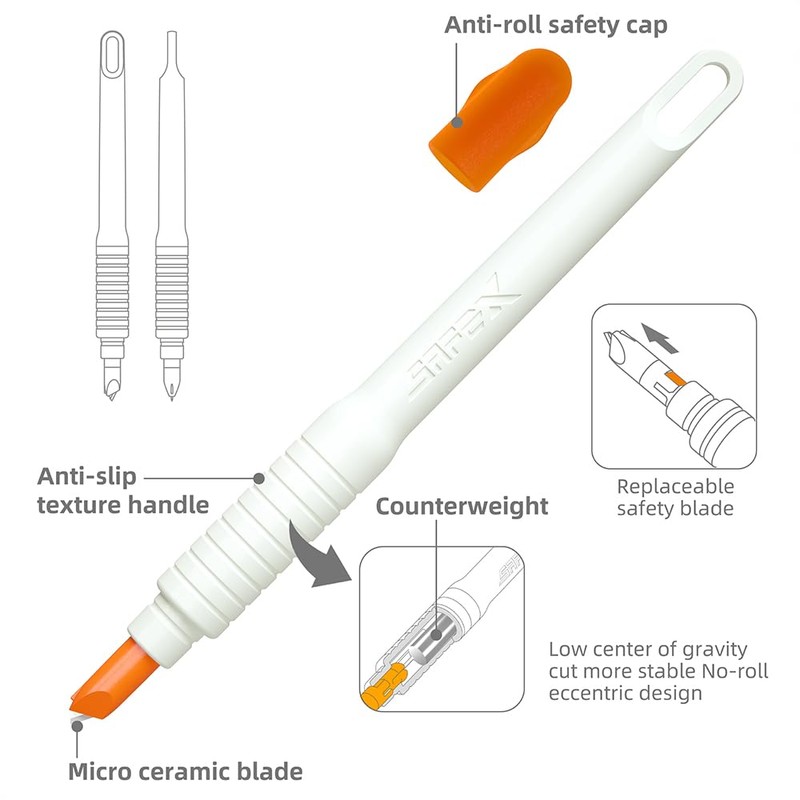 - Protective Safety Cap for On-the-Go Use: The included safety pen cap securely covers the blade when not in use, preventing scratches in toolboxes, bags, or drawers. Perfect for crafters who work on-the-go or have small children at home, ensuring peace of mind during storage and transport.