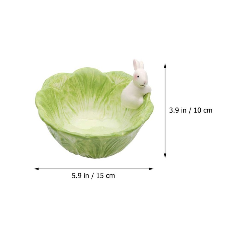 Ceramic Bunny Cabbage Bowl Fruit Salad Bowl Easter Rabbit Food Snack Serving Bowl Tableware Easter Bunny Home Decoration (Green)