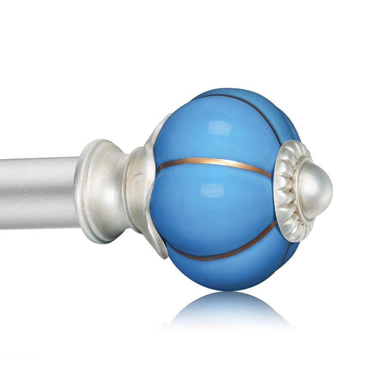 Ceramic Curtain Rods for Windows 48 to 84 Inch,1 Inch Adjustable Telescoping Drapery Rod Heavy Duty Window Treatment Single Curtain Rod Set for Bedroom,Silver Blue