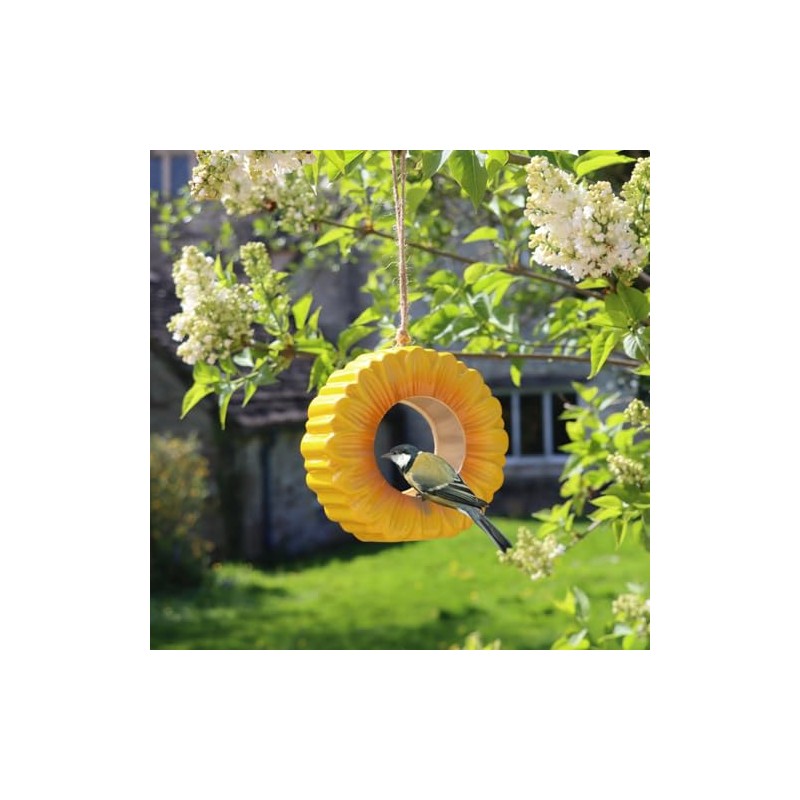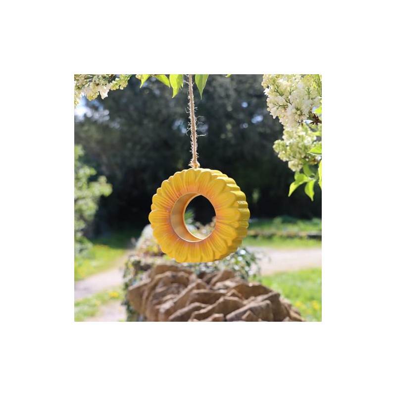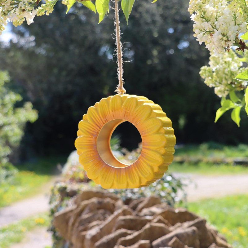 - RADIOUS DESIGN - In the shape of a vibrant sunflower, this glazed ceramic feeder adds warmth and cheer to any outdoor space.