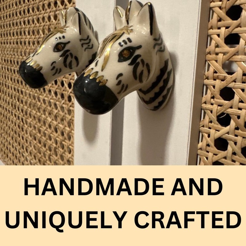 • Quality hand made ceramic Zebra knob with gold and black detail. Shades may vary as these are all handcrafted