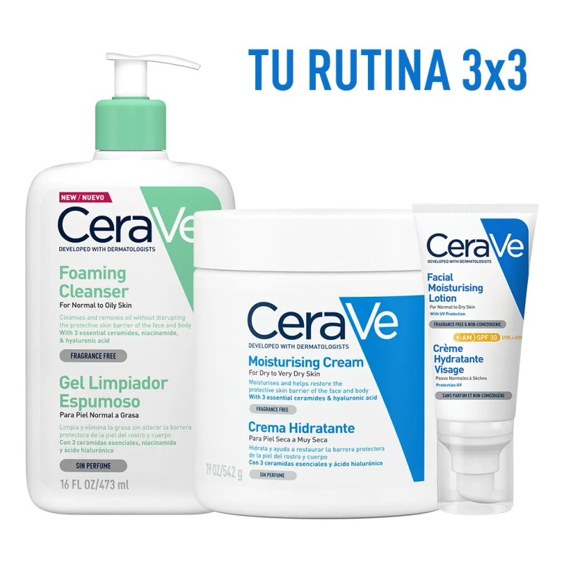 CeraVe Bundle Piel Normal Kit 3 Unidades: La Rutina Esencial para una Piel Equilibrada, Hidratada y Protegida 🧼💧☀️
