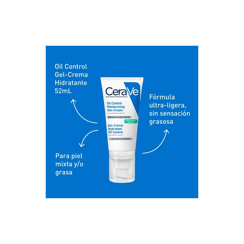 Cerave Oil Control Gel-crema Hidratante | Control de brillo | Formula Ultra-Ligera para piel mixta | 52ml