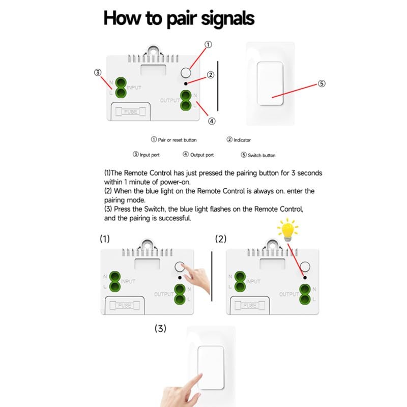 - 👍.2,Easy to install, the switch panel does not require rewiring. Simply connect the receiver to the live and neutral wires of the desired light, and press the switch panel to control the light on and off (the original wall switch must be powered on)