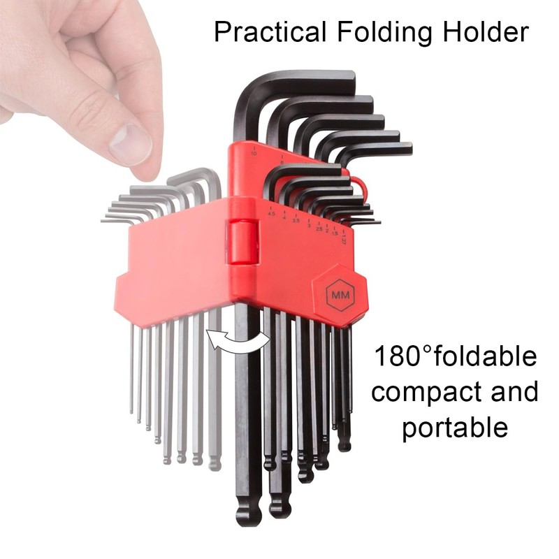 - Allen Key Ball Head: Metric hex key set made of chrome vanadium steel, treatment of surface oxidation to prevent rust, provide reliability and durability.